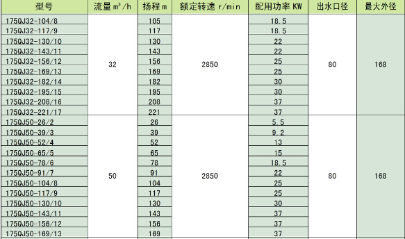 十、QJ型深井潛水泵性能參數